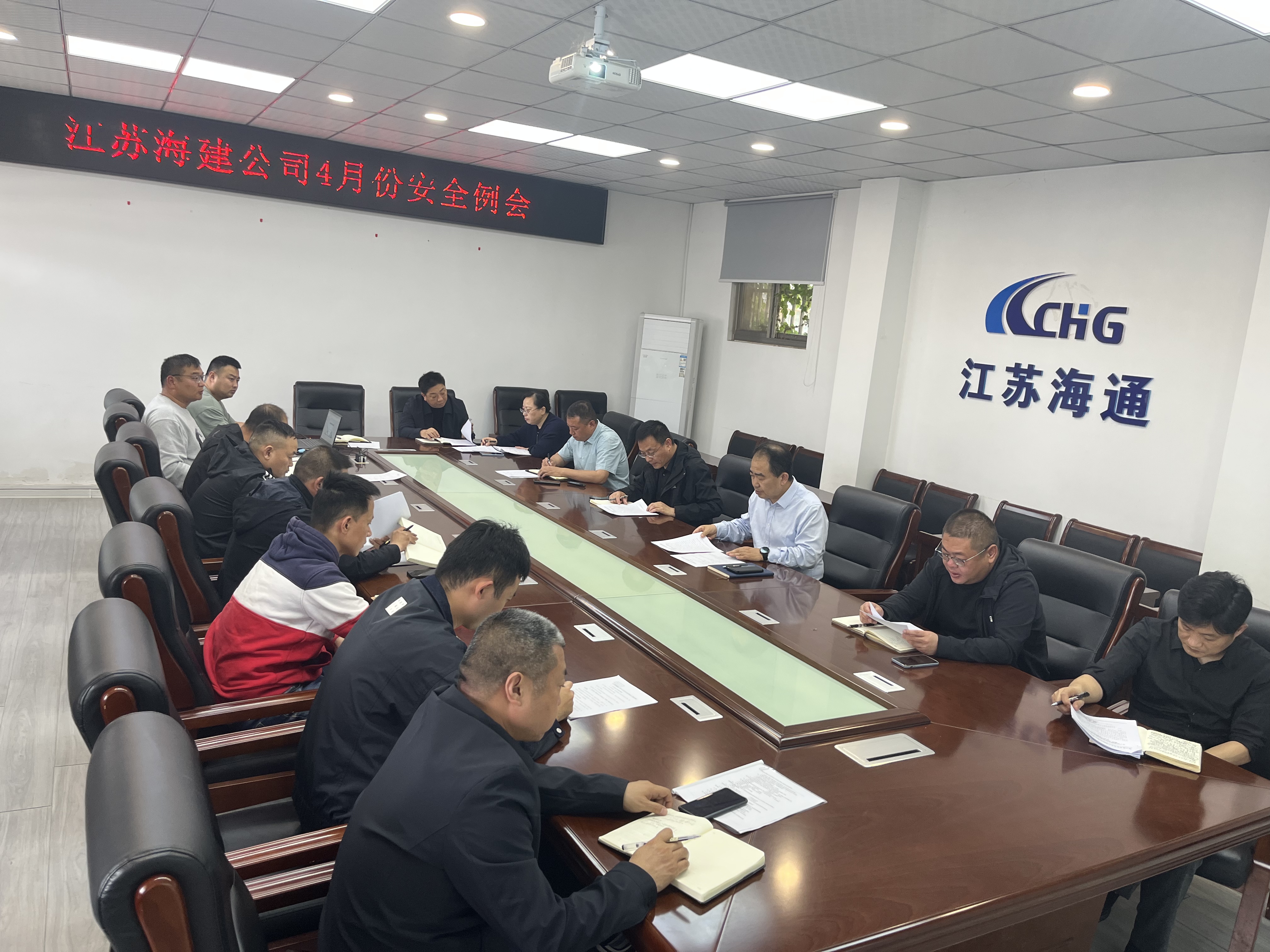 4月27日下午,海建公司召开4月份安全例会,公司总经理徐其翔、安全分管领导章海涛,安监部成员、分(子)公司安全分管领导及安全部长参加会议。