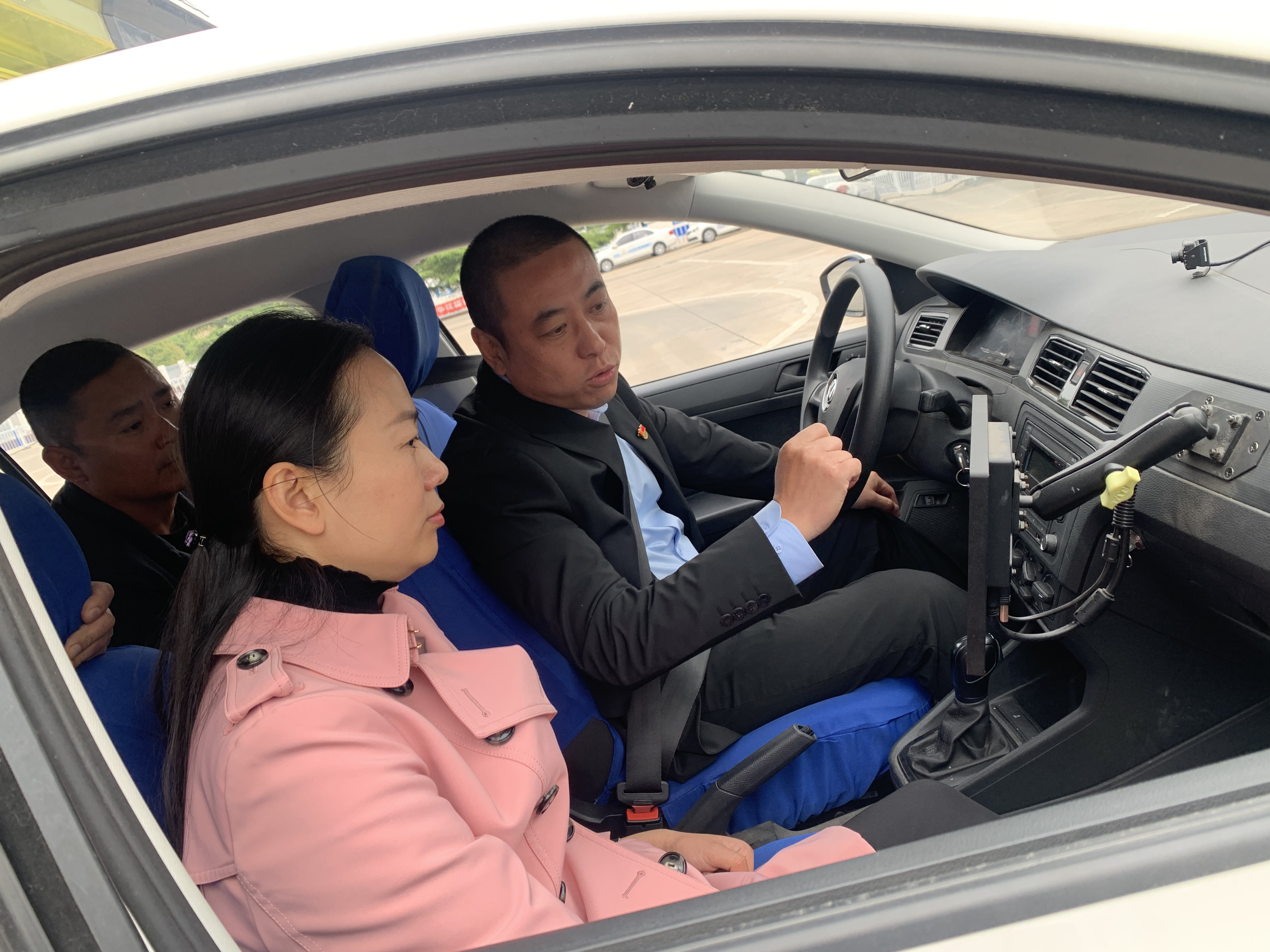 驾培事业部党支部书记、经理王慧敏带领交流团队参观并介绍“交通e驾”先锋车驾管便民服务大厅、香溢智能化训练场地、“交通e驾”智慧中心,浦南大小车考练场、徐圩校区以及今年的重点项目在猴嘴建设的市五小车辆驾考中心的相关业务开展情况,驾培事业部科目二智能化教学小组教练员陈步刚同志向来访参观者规范化的讲解了科目二智能化培训的全流程。