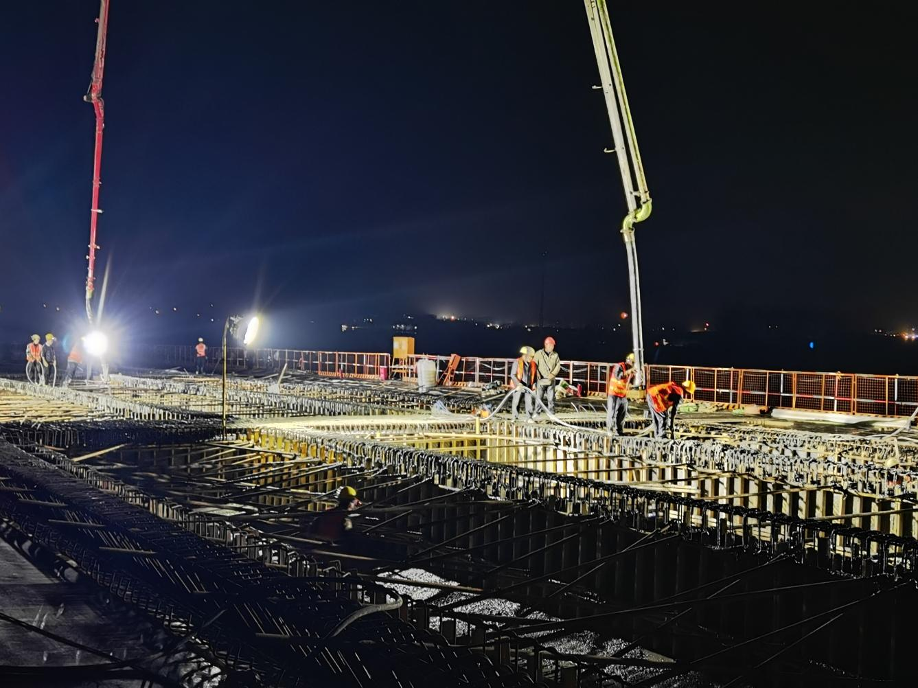 此次浇筑任务艰巨,挑战重重。从前期的精心筹备到实际施工,每一个环节都凝聚着建设者们的智慧与汗水。施工现场,机器轰鸣,一片繁忙景象,施工人员们各司其职,紧密配合。技术人员时刻关注着浇筑过程中的每一个细节,凭借着精湛的专业技能和丰富的经验及时解决出现的各种问题,确保混凝土的浇筑质量和速度。