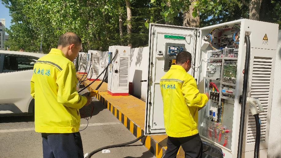 明茂公司西区班组为海州庙会新能源车辆保驾护航