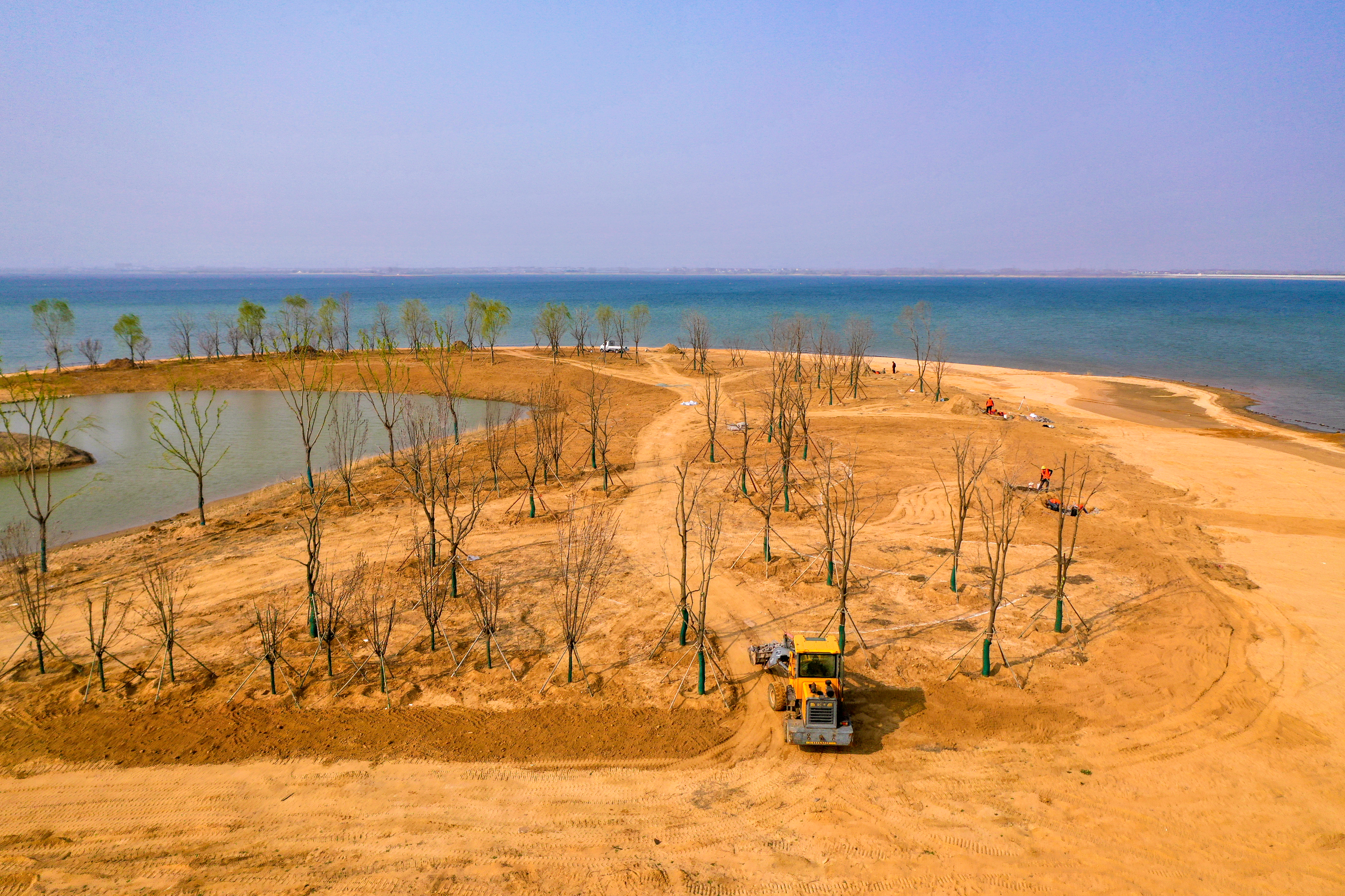 打造示范景观画卷——目前,黄金沙滩场地回填及地形整理工作已全部完成,已种植朴树、栾树、碧桃等高大乔木和鸢尾、金丝桃等灌木百余棵,整体绿化种植工作已完成60%,层叠尽染的生态示范点正随春风逐日泛绿。