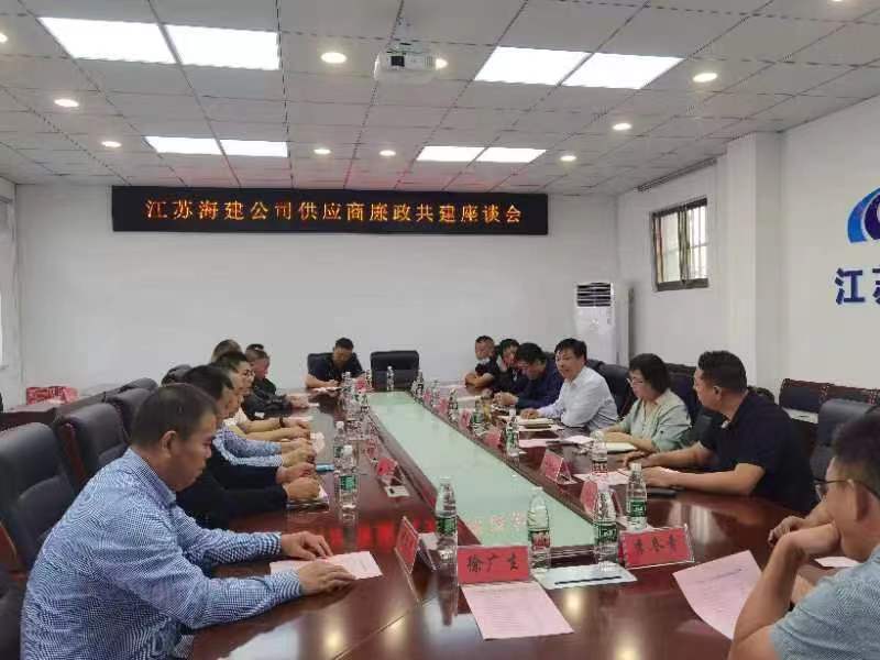 为进一步推动海建公司党风廉政建设工作,强化供应商“崇德尚廉、诚信共赢”廉洁营商理念,把好项目管理、工程招投标、物资设备采购等重要领域廉洁关,9月27日,江苏海建公司纪委组织部分合作供应商召开廉洁座谈会,公司党委书记仲济强、纪委书记韦晓燕,副经理徐其翔及15家供应商代表参加了本次座谈会。