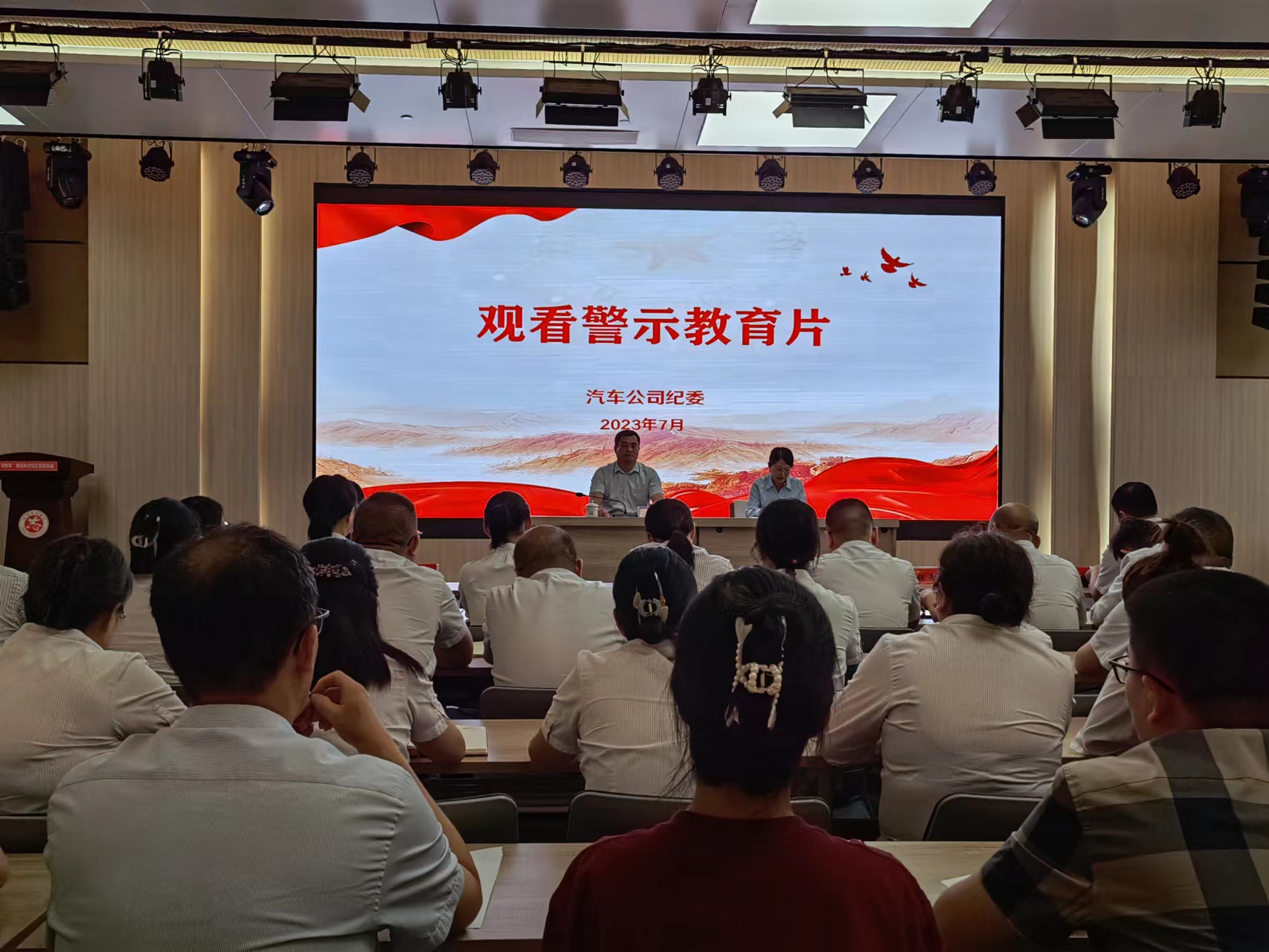 7月11日下午,汽车公司召开警示教育大会。汽车公司纪委组织公司领导班子、机关中层以上干部、各权属单位班子成员、财务及资产等重点岗位60余人参加会议。会议由纪委书记孙君茹主持。