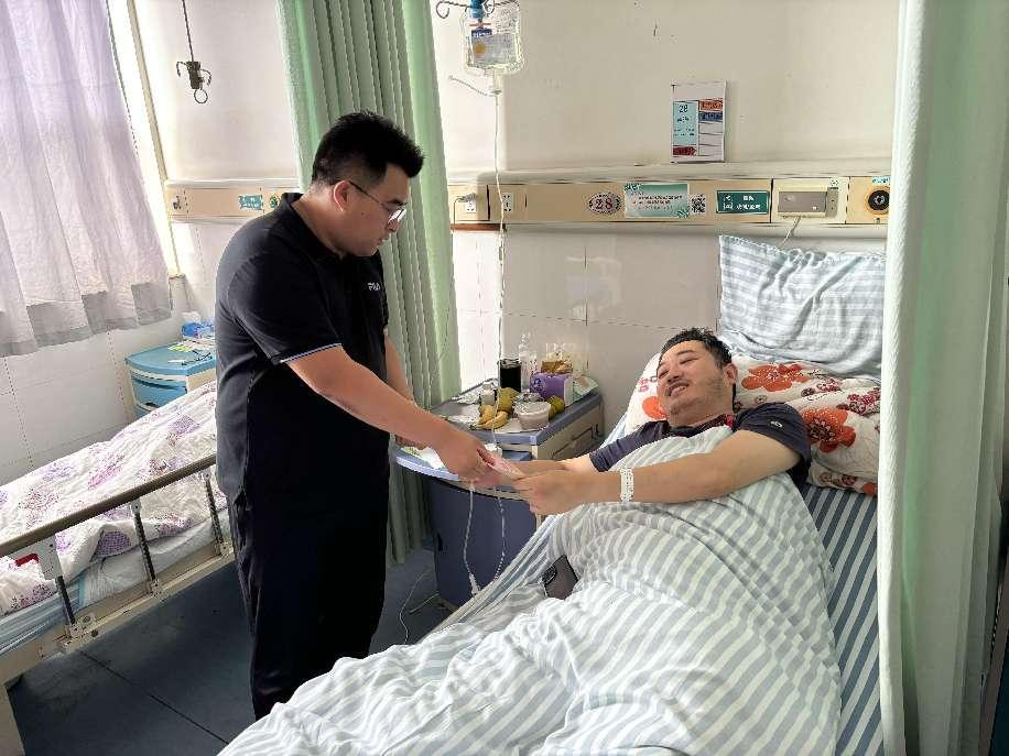8月28日,明茂公司副总经理刘东一行带着公司的关爱与嘱托,到中医院看望生病职工卢洋,把慰问金送到他的手中,带去了明茂公司的关心与关爱。