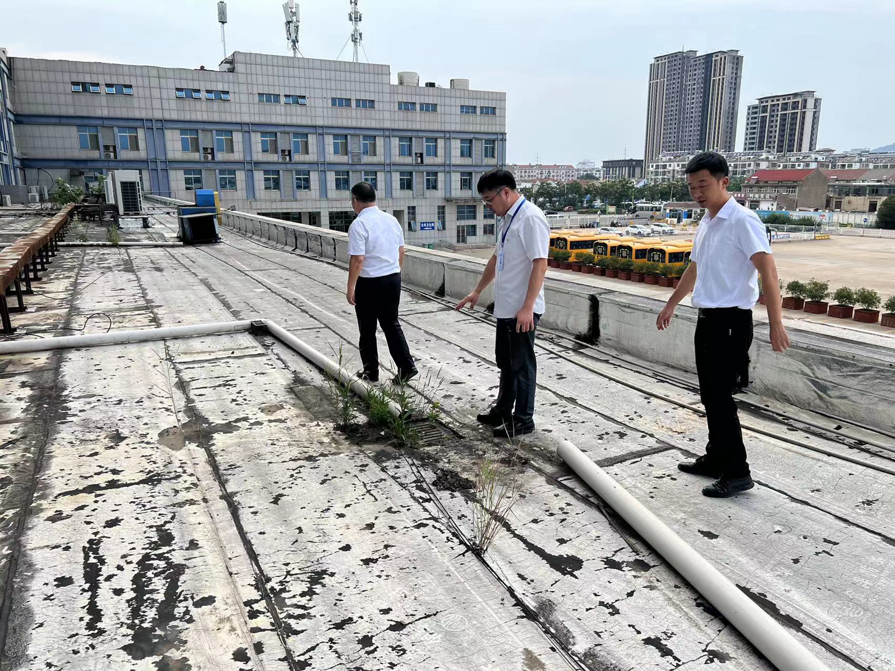 经理张洪伟立即带队开展了对出租房屋场地、消防设施配备、楼顶平台排水口、防火防电等安全隐患排查,对于发现的问题要求立即整改到位,确保设施设备不留隐患。张洪伟要求做好“三叮嘱”:叮嘱承租方做好恶劣天气防范措施;叮嘱运营车辆如遇短时间雷暴大风天气,就近选择安全区域停运;叮嘱各科室下班后关闭门窗,办公场所非特殊需要用电设备统一断电,对站外所有活动宣传展板收进室内,真正做到未雨绸缪,防患于未然。