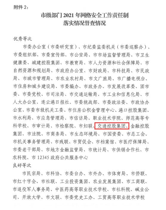日前,市网信办通报2021年度全市党委(党组)网络安全工作责任制落实情况督查检查结果,爱游戏app最新版下载,爱游戏(中国)被评为优秀等次。