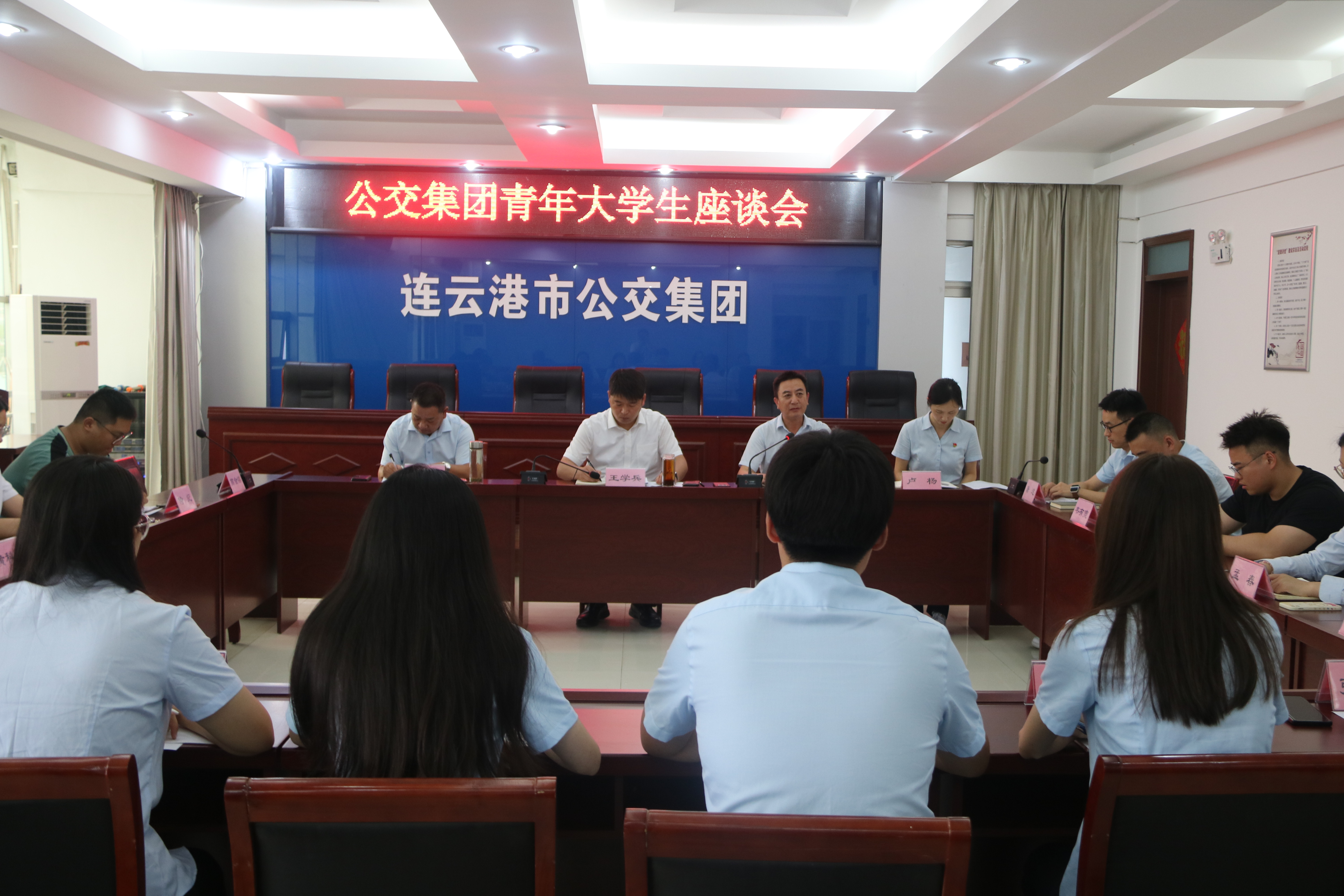 王学兵结合大家的发言发表感触,他指出,要充分认识加强青年人才队伍建设的重要性,源源不断地培养造就大批的优秀青年人才,事关公共交通事业的发展,事关党的事业的薪火相传,青年人才是建设的中坚力量,青年人才是公交事业的继承者。他对参会大学生们提出几点要求:一是看在远处,加强职业规划,给自己设定短期、中期、长期目标,脚踏实地,一步一步实现,不断增强自己的成就感和动力。二是站在高处,坚定理想信念,核心是坚持党的领导,始终将自己的思想和行动统一到党的决策和部署上来,端正品行,低调做人,高调做事。三是干在实处,练就干事创业的本领,要有奋发有为的精神,奔腾不息的活力,善于创新,敢于碰硬,用脚踏实地和埋头苦干的精神实现跨越发展。