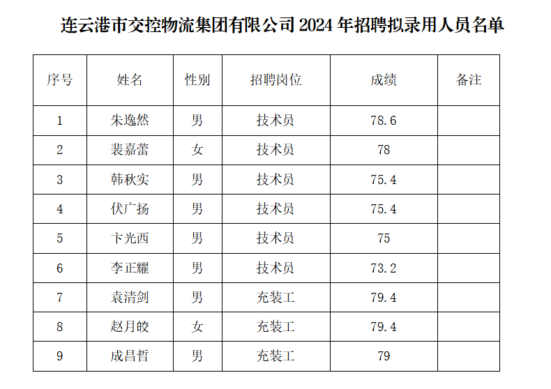 根据连云港市交控物流爱游戏app最新版下载,爱游戏(中国)有限公司2024年招聘简章有关规定和要求,现将本次招聘拟录用人员名单予以公示。