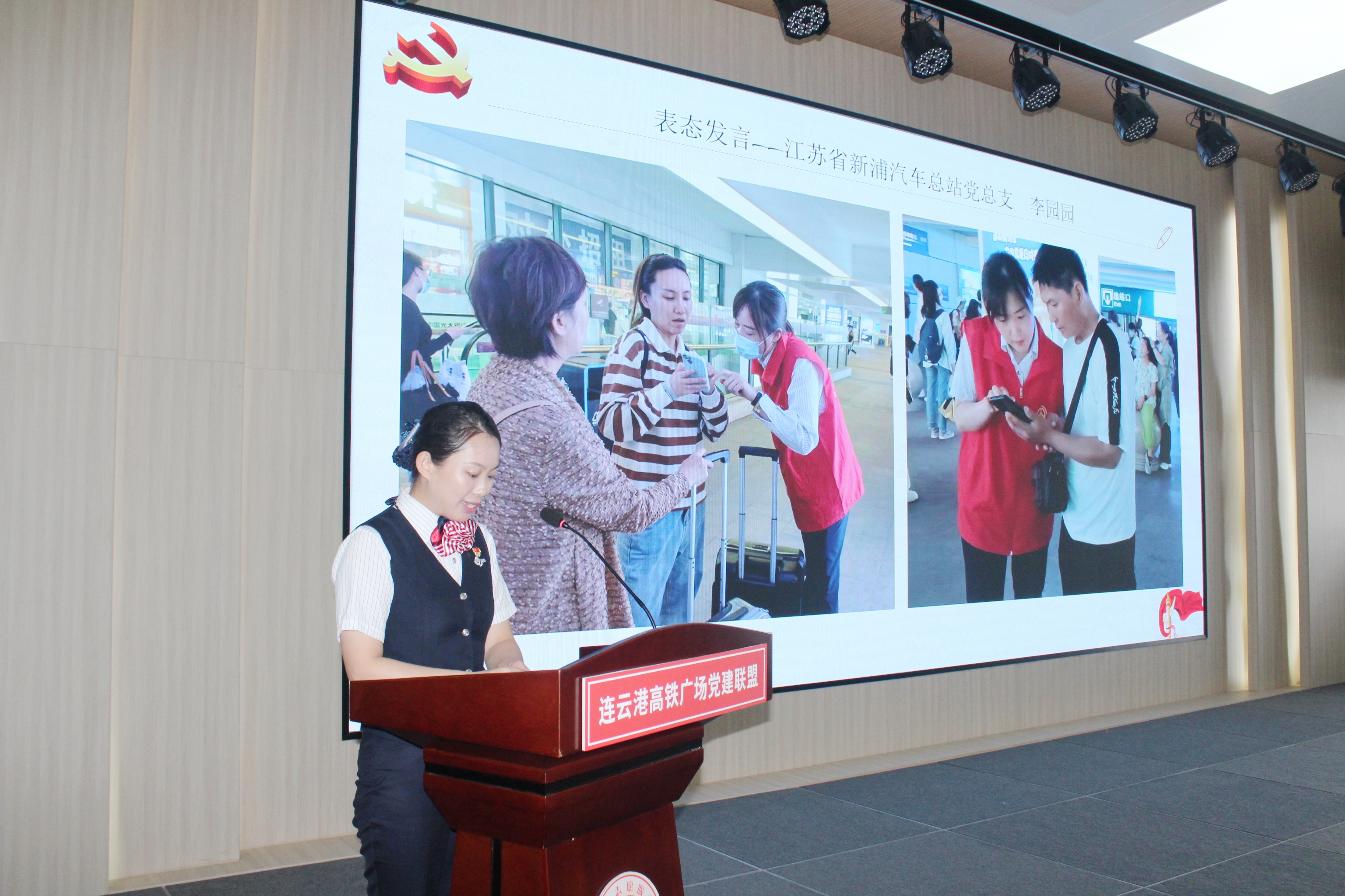 活动中,李园园作为“雷锋车”组党支部代表进行了发言。她表示,作为连云港站广场党建联盟成员之一,“雷锋车”组党支部将充分利用“雷锋车”的社会影响力,继续践行爱岗敬业、服务人民、奉献社会的不变承诺。继续弘扬雷锋服务人民、助人为乐的奉献精神,把坚守核心价值、持之以恒打造精神家园的坚韧意志,落实到为南来北往旅客服务中,让人民群众切实感受到“雷锋车”的温暖。充分利用“雷锋车”驿站这一优质志愿服务平台,带动全社会的志愿力量加入到志愿服务中,将日常帮扶、节日关爱和志愿服务相结合,树立品牌形象,形成长效机制。