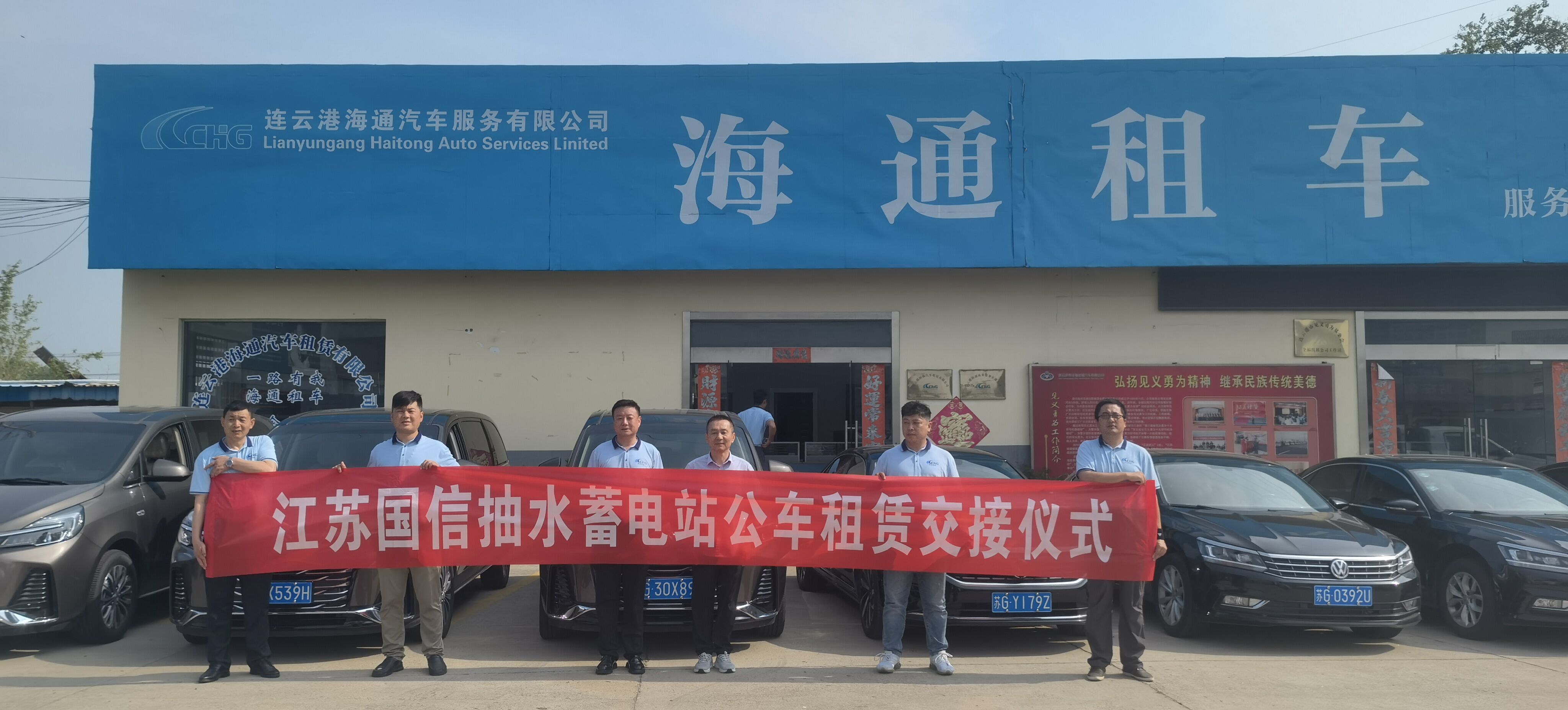 7月10日,连云港海通商务服务公司与江苏国信连云港抽水蓄能发电有限公司的公务车租赁交接仪式在租赁公司院内举行。并现场签订了《汽车租赁服务技术协议书》。